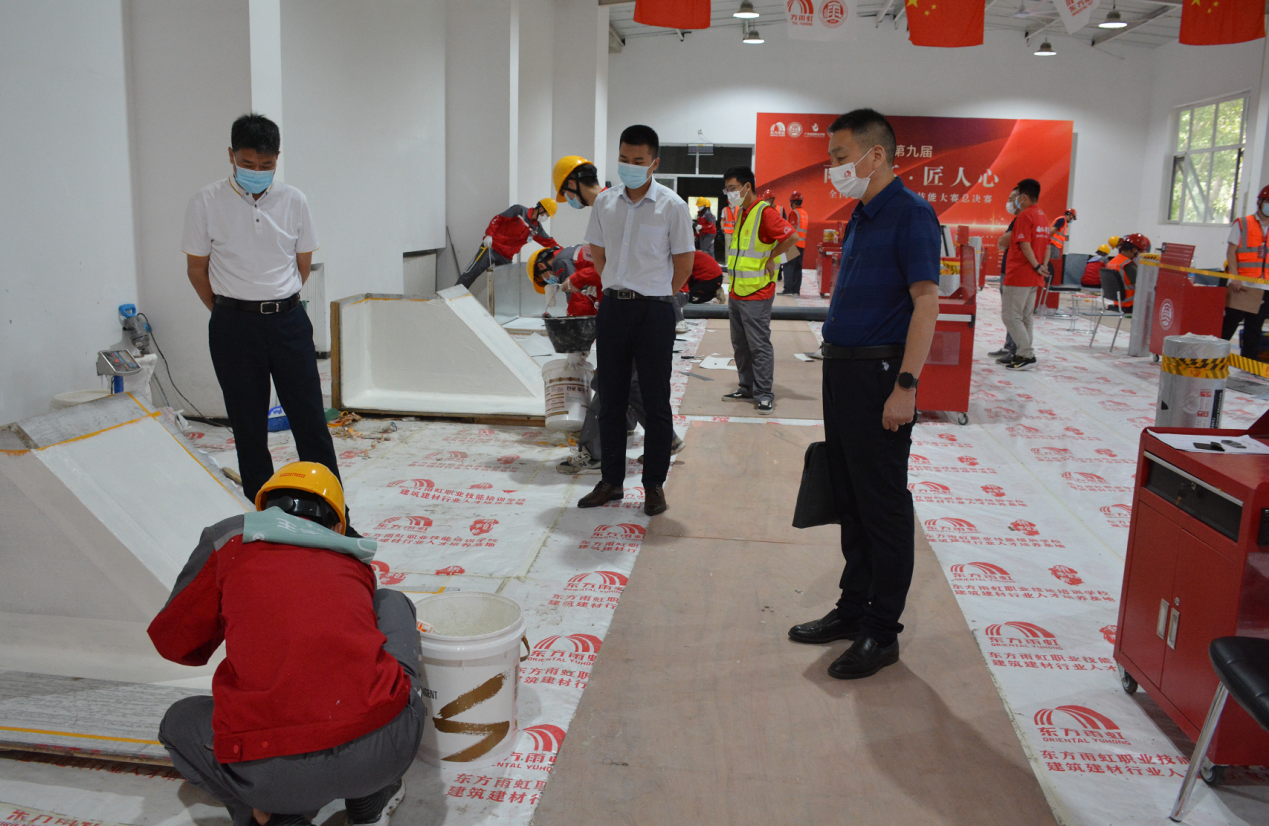 8月4日,鲍桂楠副院长一行出席了由北京市顺义区人力资源和社会保障局提供相关政策及技术支持,北京东方雨虹防水技术股份有限公司主办,徐州工业职业技术学院、广州城建职业学院、江苏城乡建设职业学院协办的第九届“雨虹杯·匠人心”全国建筑防水职业技能大赛总决赛。在开幕式上,鲍桂楠副院长做了热情洋溢致辞,他强调职业技能大赛是职业教育“岗课赛证”融通职教改革的重要抓手,也是建筑防水行业一个交流学习和展示技艺的平台,在促进行业技术技能高质量发展中起到示范引领作用,希望建筑防水行业职业人、职教人不仅要有良好的职业素质,更要树立正确的职业态度,培养高尚的职业道德,练就高超的职业操作技能。要有“精于此道,以此为生”的信念,锤炼大国工匠精神,实现技能报国,用高超的职业技能谱写出彩的人生。