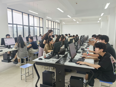 杨琼老师的《SU室内设计制图》课程突出实操训练,强调“学—练—评”一体化。学生们在电脑上进行建模与制图练习,杨老师逐一指导操作方法,并及时点评修改要点,既提升了学生对软件的掌握程度,也强化了他们的空间感和表达力。课堂氛围活跃,师生交流频繁而高效。
